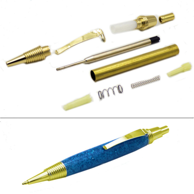 Gold finished Spiral Pen Kit Set. The Senator pen is the beautiful stylish pen with and lovely weight to it. The kit comes complete with all the parts to fit into the turned pen of your choice.
